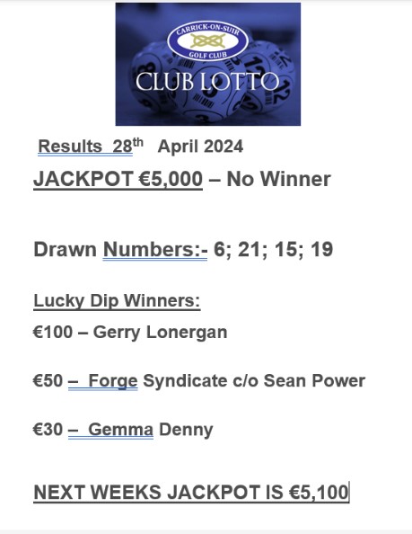 • Carrick on Suir Golf Club Lotto Results 12th April 2026
